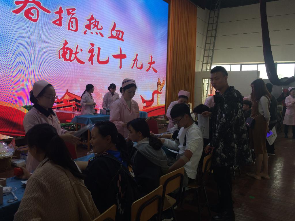 学校开展“欢庆十九大 永远跟党走”无偿献血活动