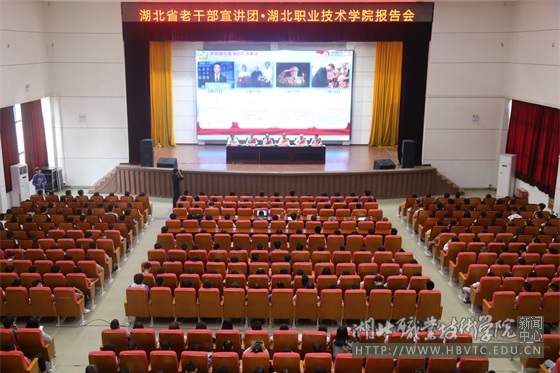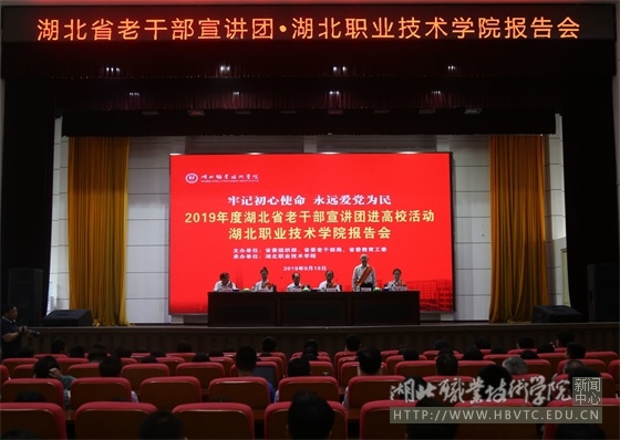 9月18日,在喜迎新中国成立70周年之际,由省委组织部、省委老干部局、省委教育工委组织的2019年度湖北省老干部宣讲团进高校活动·湖北职业技术学院报告会在我校西区文昌礼堂举行。张富清同志先进事迹报告人向梓涵、“当代雷锋”吴天祥、 “农技120”陈再明、沈因洛同志先进事迹报告人张婷现场分享了发生在老同志们身上的感人事迹,给参会师生上了一堂生动、深刻的思政课。