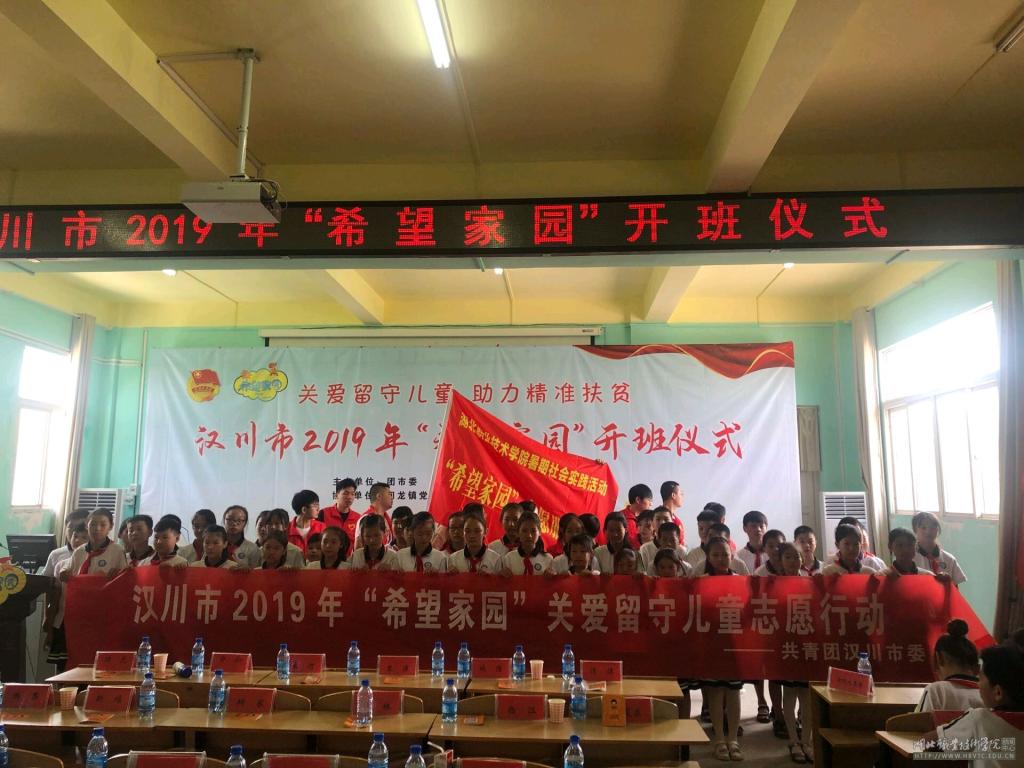 7月2日上午,汉川市2019年“希望家园”开班仪式在回龙镇举行。湖北职业技术学院大学生积极自愿报名,成立了由医学院胡慧为指导老师,周扬同学为队长,共12名大学生参与的“希望家园”志愿者服务队,与汉川市回龙镇留守儿童结对子,开展为期1个月的暑期社会实践活动。