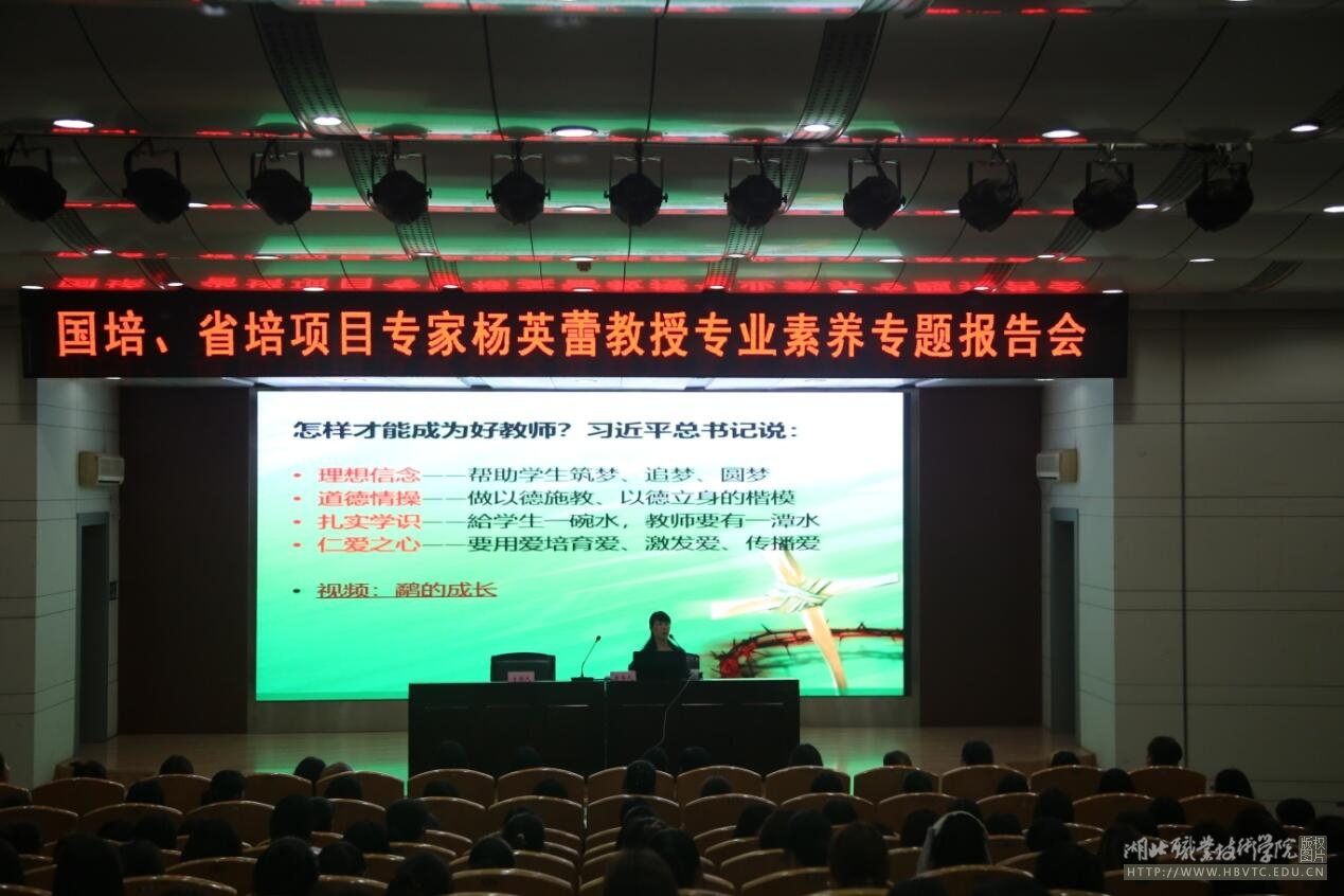 4月18日,应学校邀请,国培、省培项目专家、孝感市财贸幼儿园园长杨英蕾教授作了主题为“专业学养与职业素养”的专题讲座。教育与艺术学院班子成员、学前教育专业师生代表等聆听了报告。