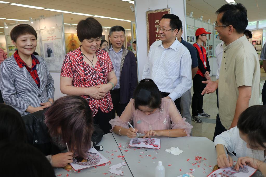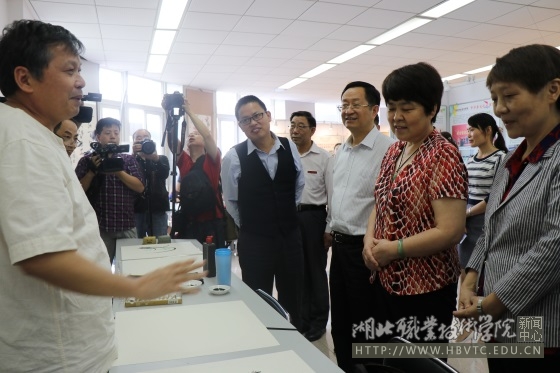 会前,与会领导嘉宾兴致盎然地参观了湖北职院省级科普基地“孝文化艺术传承与教育基地”,基地现开设11个各具特色的文化展区,有入选世界吉尼斯纪录的王土清百米丝画《锦绣中华纵览图》、穿越千年的云梦睡虎地秦简展品、美仑美奂的吕唯平扎染艺术成果等,有人类(世界级)非物质文化遗产孝感雕花剪纸、国家级非物质文化遗产云梦皮影、汉川善书等,湖北省非物质文化遗产应城膏雕、大悟北路子花鼓戏等,也有国家文化名片安陆漫画、孝昌书法、大悟汉绣等。展区陈列的我校孝文化教育实践成果,获得与会各级领导的高度赞赏。