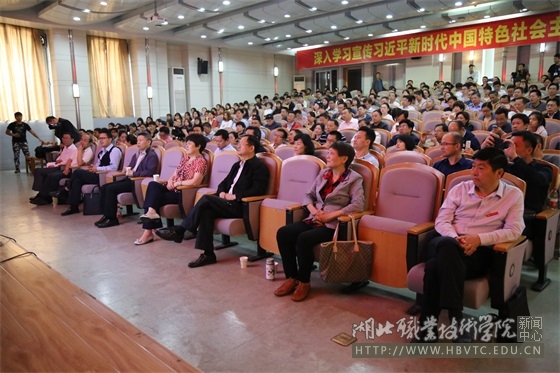 省社科界代表,孝感各县市区委宣传部负责人,学校党委委员、纪委书记高英雄,党委委员、副校长刘发兴、李佳圣以及中层副职以上干部和部分师生代表等300余人参加了大会。