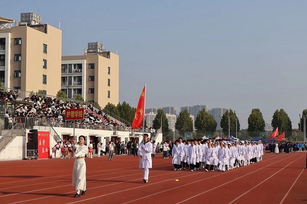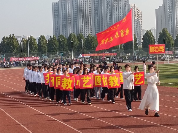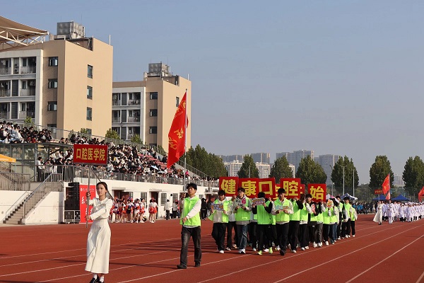 伴随着激昂的《运动员进行曲》,在国旗护卫队的引领下,会徽队、鲜花队、旗林队、各学院代表队、教职工代表队、裁判员代表队迈着整齐矫健的步伐依次入场。文体表演环节中,歌曲《我的天空》唱出青春理想,啦啦操《活力飞扬,逐梦赛场》跳出运动激情,赢得全场阵阵喝彩。