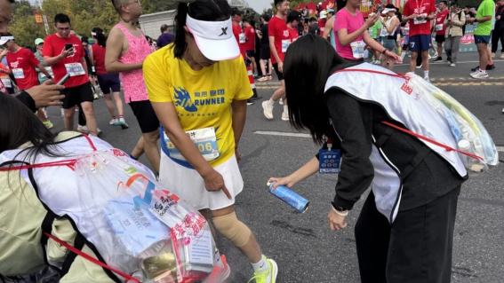 在长达数小时的志愿服务中,志愿者们始终精神抖擞、热情不减。赛前宣传接待岗的志愿者们动作娴熟地开箱、取水、斟倒,在为运动员快速补给运动饮料与饮用水的同时,用响亮的呐喊与真挚的掌声,为每一位前行者加油鼓劲;赛道医疗观察岗的志愿者们密切协作,目光专注地巡查赛道安全、维护现场秩序,为赛事的平稳推进保驾护航;赛后拉伸区的志愿者们早已备好冰水与按摩垫,用专业的手法为疲惫的跑者舒缓肌肉、放松身心,让每一份坚持都能收获温暖回响。