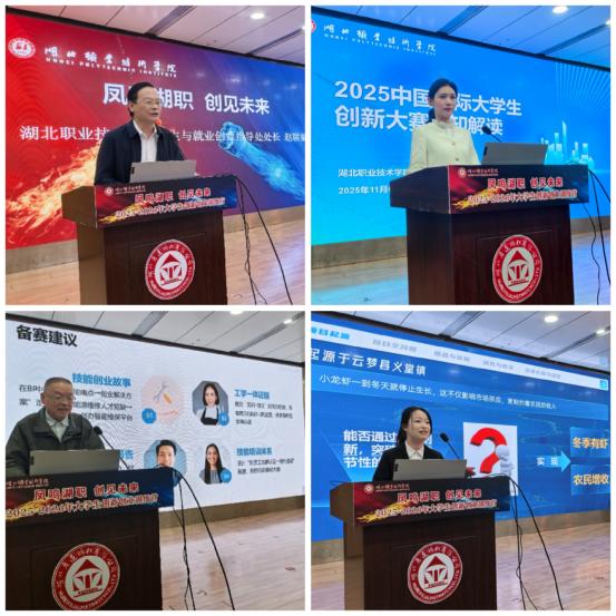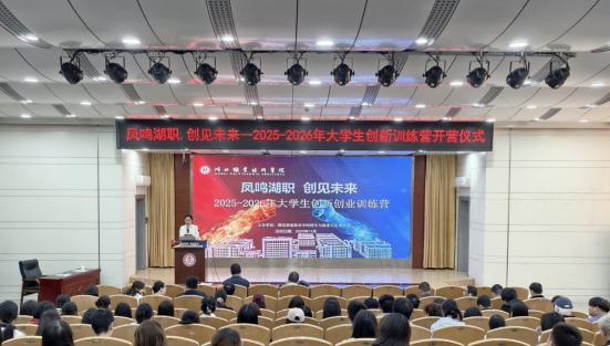 (本网讯 黄灿)11月5日下午,湖北职业技术学院2025—2026年 “凤鸣湖职,创见未来”大学生创新训练营开营仪式在西区学术报告厅举行。学校党委委员、副校长梅重,各教学院分管学工负责人、特邀嘉宾、导师团及200余名学员参会,共同启动系统化、实战化双创培养计划。活动由招生与就业创业指导处副处长王宇阳主持。