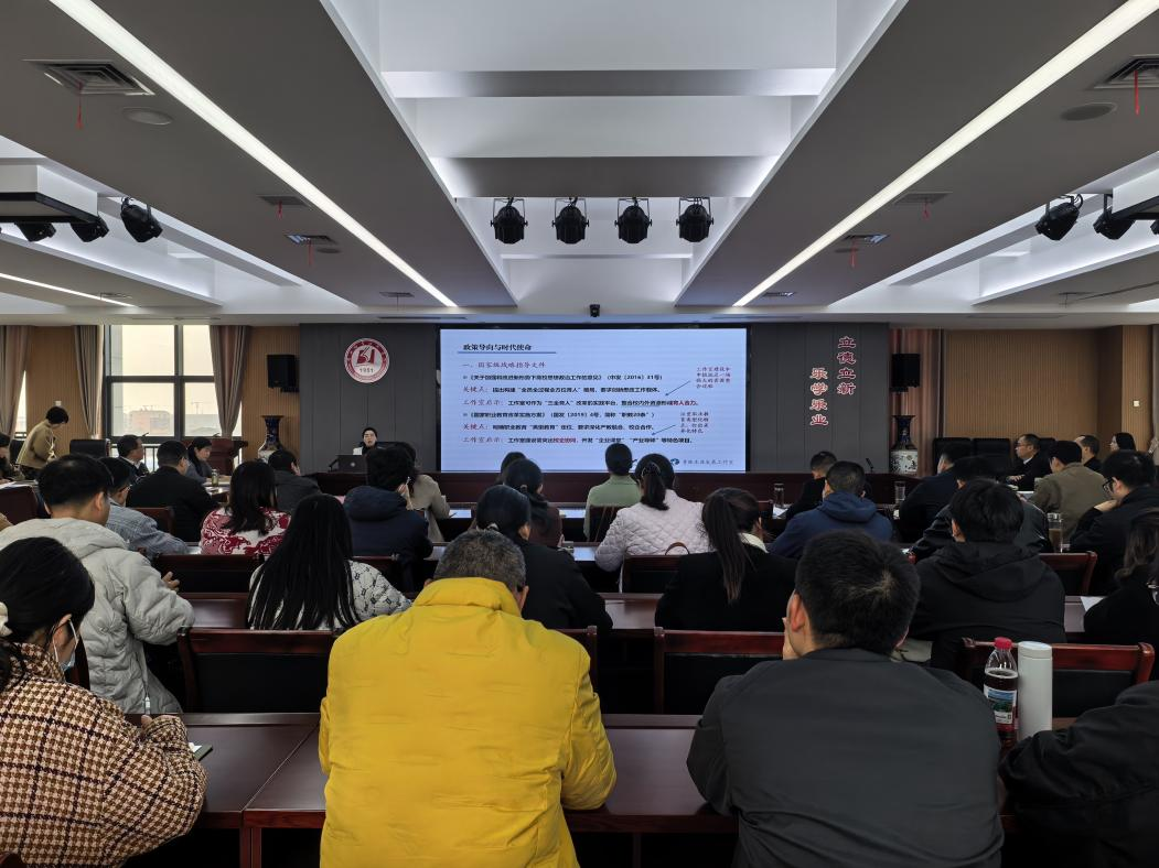 (本网讯 王欣怡)11月11日上午,学校2025年第五期辅导员专题培训在南校区图新大楼601会议室举行,培训主题为“高校辅导员工作室建设与申报”,特邀2025年度教育部高校辅导员名师工作室——青睐生涯发展工作室主持人、武汉职业技术大学光电与信息工程学院学工办主任武浩敏作专题讲座,旨在帮助辅导员精准把握职业教育背景下工作室建设的核心要求,提升团队构建、项目运营与成果转化能力。学校党委委员、副校长梅重出席活动,各学院学生工作分管负责人,全体专职辅导员和兼职辅导员代表参加培训,党委学工部部长魏俊桃主持。
