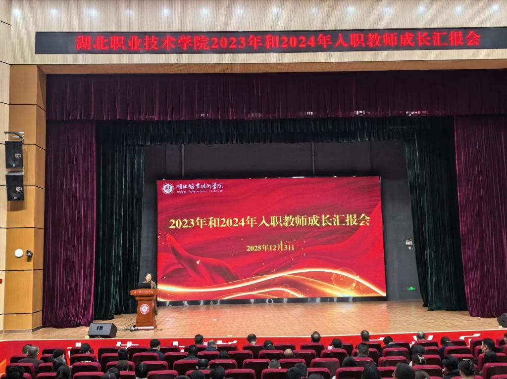 (本网讯 何巧巧 唐熙隆)12月3日下午,学校在南校区崇德礼堂举行2023年和2024年入职教师成长汇报会。校党委书记郭国文、党委副书记王益贤、副校长杨立明、纪委书记王文康、副校长胡昌杰出席会议,相关二级单位负责人及2023年、2024年、2025年入职教师参加活动,共同见证青年教师的成长蜕变。