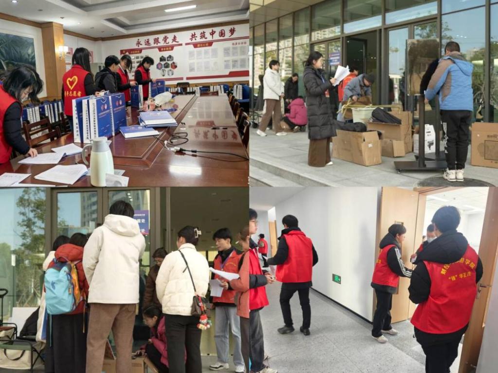 分组联动,志愿同行。百余名志愿者按赛项需求划分为接待组、引导组、检录组、场务组、设备组等各个小组,统一着装、挂牌上岗,以“精准对接、全程跟进”的服务模式,从清晨5:00到深夜22:00坚守岗位:接待组驻守酒店与接车点,以规范礼仪迎接兄弟院校参赛师生并同步讲解赛事安排;引导组在校园主干道、赛场出入口精准指引,确保人员快速抵达指定区域;检录组严谨核对参赛信息,筑牢赛事公平第一道防线;场务组及时协调赛务衔接,维持赛场内外秩序;设备组全程值守,保障参赛设备精准就位。