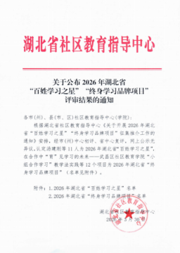 (本网讯 王菲)近日,湖北省社区教育指导中心正式公布2026年湖北省“百姓学习之星”评审结果,我校建筑工程学院程曦老师凭借在职教领域的深耕细作与终身学习的示范表率,从众多候选人中脱颖而出,成功获此殊荣。