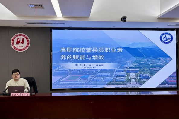 本次培训紧扣学校《“强校有我・未来可期”2026年辅导员综合能力提升工程实施方案》要求,以高职院校辅导员职业素养的赋能与增效为核心主题,特邀山东商业职业技术学院学生工作处处长李子江博士担任主讲。李子江博士深耕学生教育管理和创新创业教育一线,兼具理论深度与实践高度,授课中他结合自身成长轨迹与丰富案例,围绕辅导员职责目标、工作方法路径、职业素养提升等关键内容展开讲解,为参训人员提供了专业务实的工作指引,助力辅导员更好履行教育、管理、服务育人职责。
