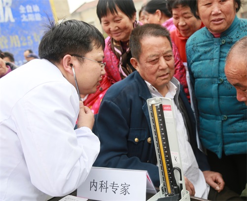 在新桥村新修的文化活动广场,人头攒动,热闹非凡。前来寻求帮助的村民络绎不绝,临时就诊台周围,很快围满了候诊和咨询的群众,大部分村民是留守老人,他们严重缺乏基本健康知识,再加上长期的劳累,导致高血压、糖尿病、劳损患者较多。专家们不仅为他们免费看病、检验、发放药品,还根据患者的病情提出治疗方案或建议,对日常饮食和休息等给予科学的指导。医务队员们热情周到的服务态度和精湛的技术受到村民的一致好评。