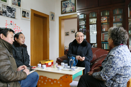 在离退休老干部程德华家中,蔡书记与他亲切握手,促膝交谈。蔡书记说,感谢老干部长期以来对学校的关心和支持,学校正处在发展的关键时期,建设任务繁重,希望老干部们一如既往地关心学校,献策献计,支持学校发展。程德华表示,虽然退休了,但是学校的发展还是牵动着老同志的心,定会全力支持。相信学校在新一届领导班子的带领下,各项工作一定会再上新台阶。