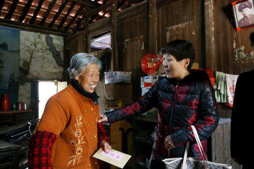 “天气冷了,您要注意保暖,多穿些衣服,照顾好身体。”当得知贫困村民刘婆婆的丈夫因中风住进了医院,朱校长关切地叮嘱她。在本次慰问活动中,朱校长一行先后走访慰问了6户重大贫困户,每到一家,朱校长与她们亲切交谈,嘘寒问暖,并送上慰问金。