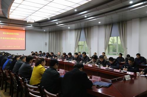 11月19日下午,学校召开了2016年高考报名暨招生宣传工作会议。校长朱虹,副校长张勇、白梦清,党委宣传部、纪委办公室、财务处、各招生责任单位负责人以及招毕办全体人员参加了会议。会议由副校长张勇主持。