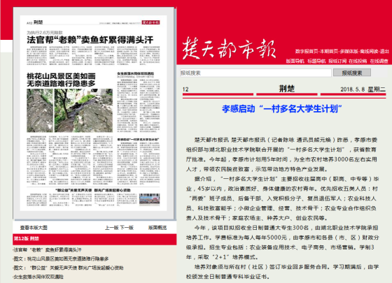 楚天都市报讯 昨悉,孝感市委组织部与湖北职业技术学院联合开展的“一村多名大学生计划”,获省教育厅批准。今年起,孝感市计划用5年时间,为全市农村培养3000名左右实用人才,带领农民脱贫致富,示范带动地方特色产业发展。
