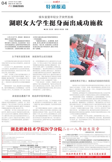“姚苗新机智救人、处理果断、程序正确,是专业教育与志愿服务相结合的体现。”连日来,姚苗新救人的事迹在湖北职业技术学院传开,受到了师生的广泛赞誉。