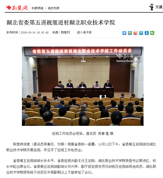 根据省委统一部署,10月12日下午,省委第五巡视组在湖北职业技术学院开展巡视,并召开了巡视工作动员会。