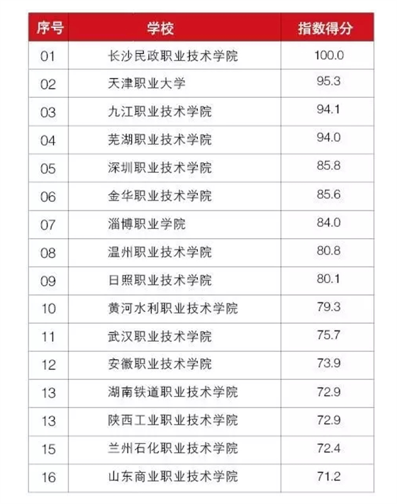 11月13日,《中国高等教育舆情报告2016》暨全国百所示范性高职院校影响力排行榜与第一届中国高职院校影响力高峰论坛新闻发布会在人民日报社举行,我校荣登全国示范性高职院校影响力排行榜30强,位列全国第24。
