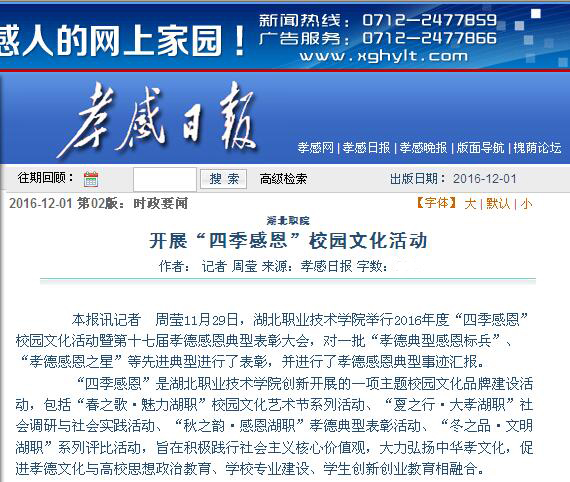 【孝感日报】开展“四季感恩”校园文化活动