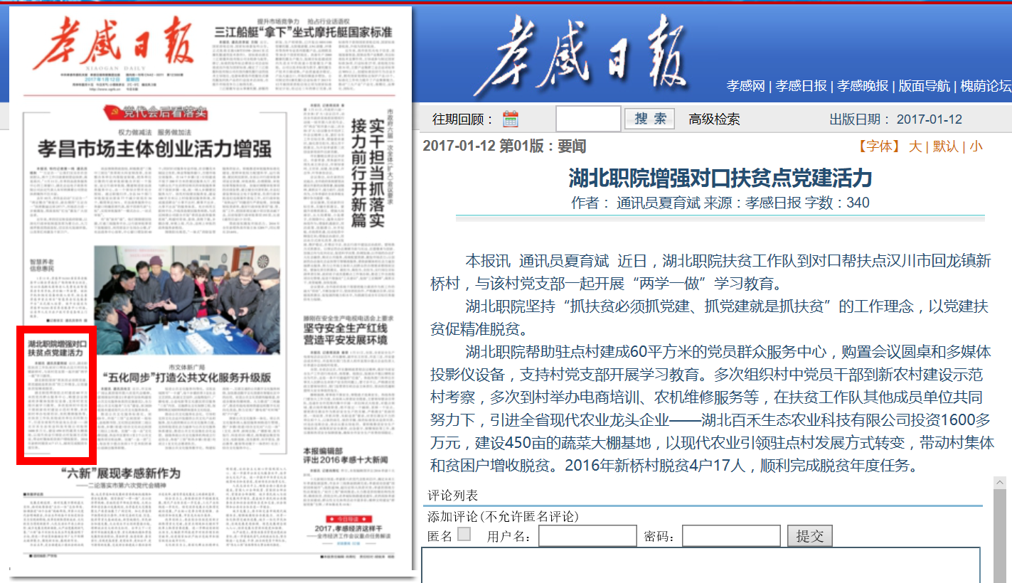 【孝感日报】湖北职院增强对口扶贫点党建活力