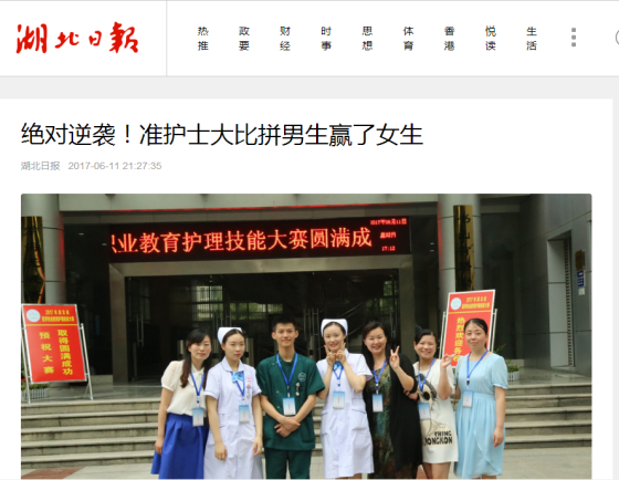 湖北日报客户端讯(全媒体记者宋效忠、通讯员吴春花、熊元焕)护理技能比赛,谁说男子不如女?11日落幕的全省医学职业教育护理技能大赛中,湖北职业技术学院2014级护理专业的男生舒类杰在“百花丛中”突出重围,获全能一等奖。