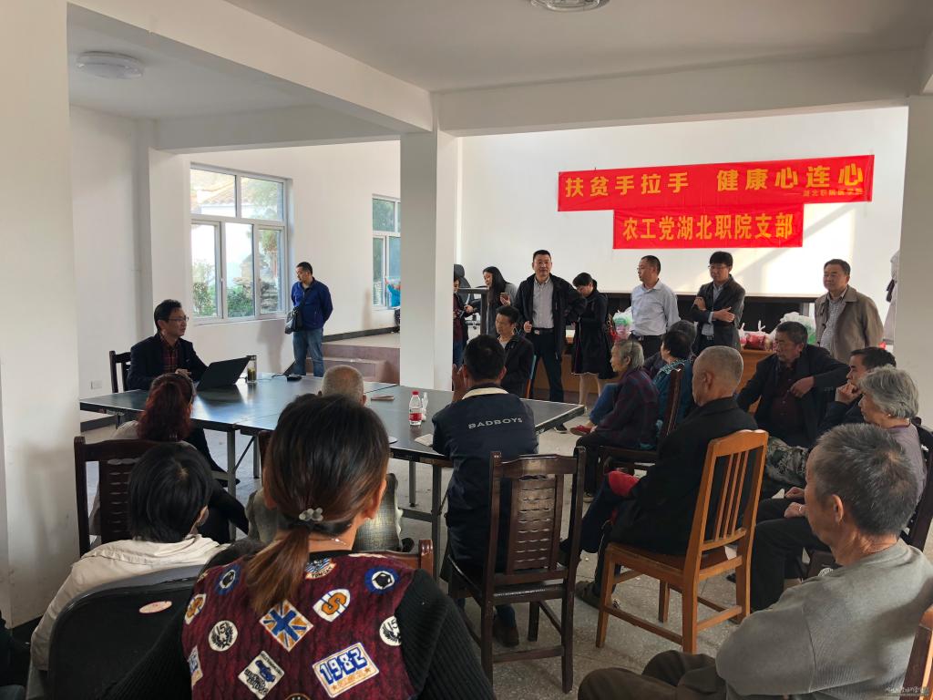 10月24日,医学院党员干部到精准扶贫点双峰山滑石村开展支部主题党日活动,同学校驻村干部、村支部成员重温了入党誓词,学习了党章第五章“党的基层组织”。湖北职业技术学院农工民主党主任委员王洪涛等也参加本次扶贫活动。