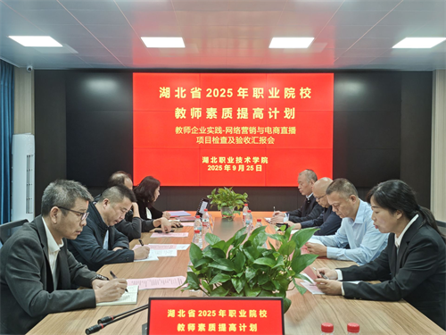 (本网讯 李媛 汪行光 肖敏晨 毛婷 马江浩 王峰 李蓓蕾 宋巍)9月24日—9月25日,由武汉交通职业学院副校长镇伟、武汉职业技术大学副处长宋会林、咸宁职业技术学院继续教育学院院长吴义三、湖北省国培项目办杨瑾组成的验收专家组,对我校承办的湖北省2025年职业院校教师素质提高计划教师企业实践—网络营销与电商直播(国培)项目的实施成效、组织管理、资金使用等方面进行全面、严谨的验收评估。学校党委委员,副校长杨立明出席会议并致辞。会议由财经与旅游学院曹艳芬主持。