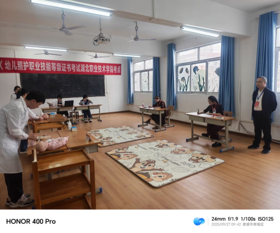 (本网讯 王叶)9月27日,教育与艺术学院成功组织并圆满完成了“1+X幼儿照护职业技能等级证书(中级)”的考证工作。本次考试共有60名婴幼儿托育服务与管理、学前教育等相关专业的学生参加,整个过程组织严密、秩序井然,全面检验了学生的理论素养与实践操作能力,标志着学院在深化职业教育改革、推进“岗课赛证”综合育人方面取得了进展。