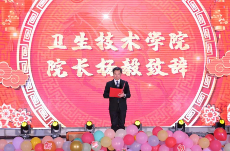 卫生技术学院院长杨毅致辞,回顾了2025年全院师生展现新作为的历程,展望了2026年发展蓝图。