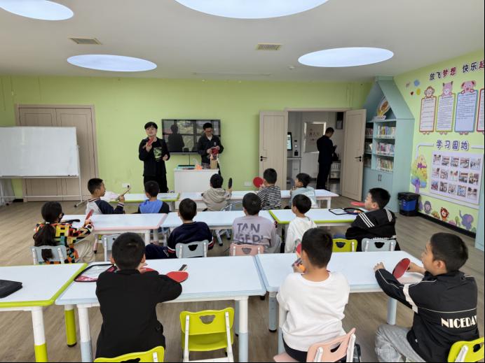 活动前期,社区与学校工作人员共同布置活动场地,摆放专业乒乓球台,准备球拍、乒乓球、防滑垫等器材,划分教学区、体验区与互动区,做好安全提示与应急准备,确保活动安全、有序、顺畅进行。