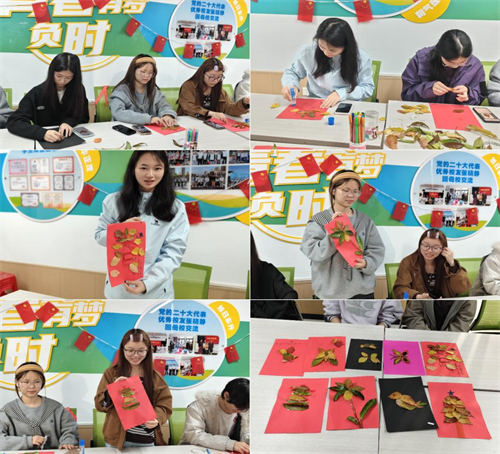 活动中,现场氛围轻松温馨,同学们热情高涨。大家把从校园捡拾的花瓣与叶片经过认真构思布局,将草木精心铺于彩纸上,一幅幅独具春日意趣的拓印作品逐渐成型。同学们相互交流创意、分享技巧,在动手实践中舒缓学业压力,沉浸式感受传统技艺的魅力。参与活动的同学纷纷表示,此次活动既有趣又有意义,在亲近自然的同时领略了非遗拓印的独特韵味,为校园生活增添了诗意与色彩。