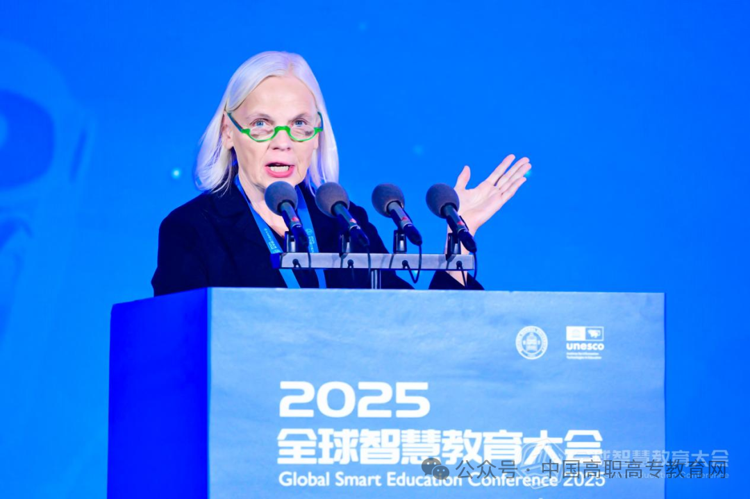 在致辞环节,教育部职业教育与成人教育司副司长李智指出,中国已全面启动“国家教育数字化战略行动2.0”,职业教育将同步实现“五个跃升”:战略定位上,从教学工具迈向智能生态;技术路线上,从“互联网+教育”升级为“AI+教育”;建设重心上,从资源覆盖转向标准引领;学习模式上,从标准化教学转向个性化培育;治理水平上,从平台运维升级为数据治理。他介绍,北京、上海、成都等试点城市已在智能备课、虚拟实验、未来课堂等场景取得阶段性成果,全球首个《教育大模型总体参考框架联盟标准》也于日前发布,为教育AI伦理与版权提供中国方案。