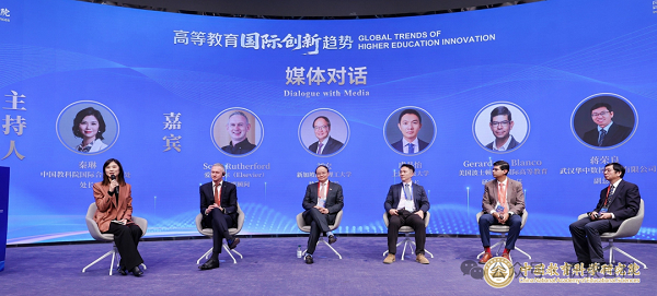 会议还设置了“媒体对话”环节,光明日报记者陈鹏、中国教育报记者高毅哲、人民网记者孙竞、中国教育电视台记者王一哲分别结合行业关切,与嘉宾就高校科研成果转化、高等教育评估评价体系优化、学科专业设置与社会需求对接、AI时代教学模式改革等热点问题进行了互动交流,现场讨论热烈、视角多元。中国教育科学研究院副院长陈如平主持开幕式,副院长李晓强致闭幕词。来自国际组织、驻华使领馆、国内外高校、研究机构、企业和媒体的代表近200人参会。